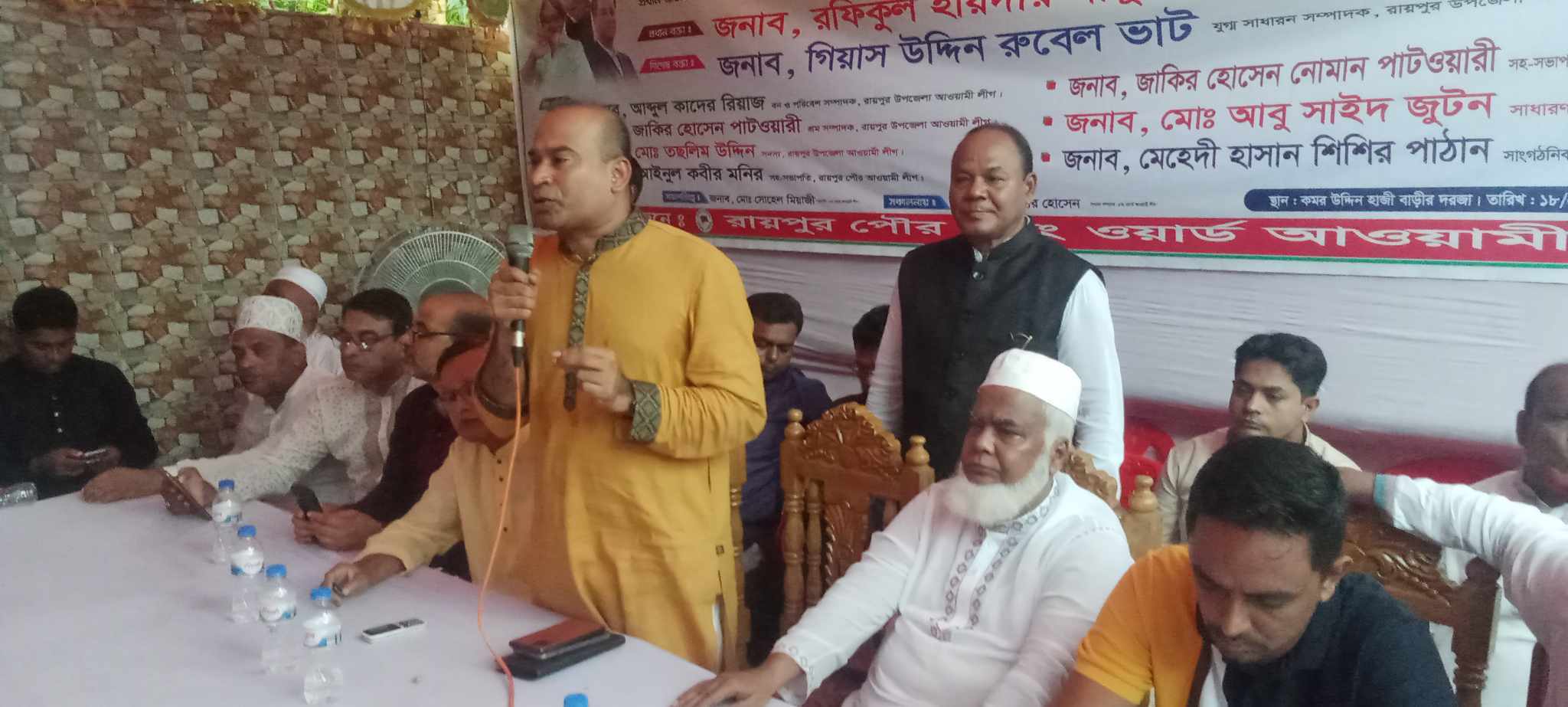সভায় বক্তারা বলেন, শেখ হাসিনা সরকার ক্ষমতায় থাকায়, দেশ ডিজিটাল হয়েছে, হাতে হাতে স্মার্ট ফোন, ক্যান্সার রোগীরা সরকারের পক্ষ থেকে ৫০ হাজার টাকা পাচ্ছে, রাস্তা-ঘাট হয়েছে, শিক্ষা প্রতিষ্ঠান হয়েছে, স্কুল কলেজ করেছে, ফায়ার সার্ভিস হয়েছে, চিকিৎসার মান বেড়েছে, ঘরে ঘরে বিদ্যূৎ দিয়েছে, কৃষক বিনা পয়সায় সার -বীজ পায়, ছাত্র-ছাত্রীদের মাঝে বছরের প্রথম দিন বই পৌঁছায়, রায়পুরে শিশু পার্ক হয়েছে, সরকারী পাঠাগার হয়েছে,  স্টেডিয়াম হবে, মডেল মসজিদ হবে, মুক্তিযোদ্ধারা ভাতা পাচ্ছে, মা-বোনেরা ভাতা পাচ্ছে, বয়স্ক ভাতা, বিধবা ভাতা, গর্ভকালীন ভাতা, প্রতিবন্ধী ভাতা পাচ্ছে, দেশের উন্নয়ন হচ্ছে। ২০২৪ সালে জনগনের ভোট শেখ হাসিনার অধীনেই হবে, আওয়ামী লীগ আবারো সরকার গঠন করবে। পৌর আওয়ামীলীগ এর সাঃ সম্পাদক আবু সাঈদ জুটন তার বক্তব্যে বলেন, দেশের উন্নয়ন হচ্ছে, অতীতের সকল ভেদাভেদ ভুলে আমরা ঐক্যবদ্ধ। আগামী নির্বাচনের জন্য ব্যাপক প্রস্তুতি নিয়ে নেতা-কর্মীদের প্রস্তুত থাকার জন্য তিনি আহবান করেন। আগামী নির্বাচনে পৌরসভায় সর্বোচ্ছ ভোট পেয়ে নৌকা মার্কা বিজয়ী হবে। জনগনের ভোটে আবারো আওয়ামী লীগ ক্ষমতায় আসবে। উপজেলা আওয়ামীলীগের সদস্য তছলিম উদ্দীন বলেন, দেশে এখন উন্নয়ন হচ্ছে, রাস্তা-ঘাট হচ্ছে, রায়পুর পৌরসভার ব্যাপক উন্নয়ন হচ্ছে, আগামীতেও আওয়ামী লীগ ক্ষমতায় আসলে দেশের আরো উন্নয়ন হবে, আগামী নির্বাচনে সবাই নৌকা মার্কা ভোট দিয়ে শেখ হাসিনার হাতকে শক্তিশালী করবেন।