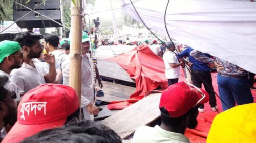 তারুণ্যের সমাবেশ: নেতাদের চাপে ভেঙে পড়েছে মঞ্চ