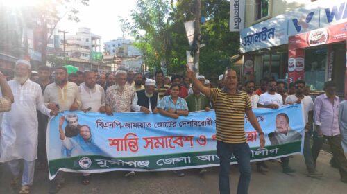 মুন্সীগঞ্জে আওয়ামী লীগের শান্তি সমাবেশ ও পদযাত্রা